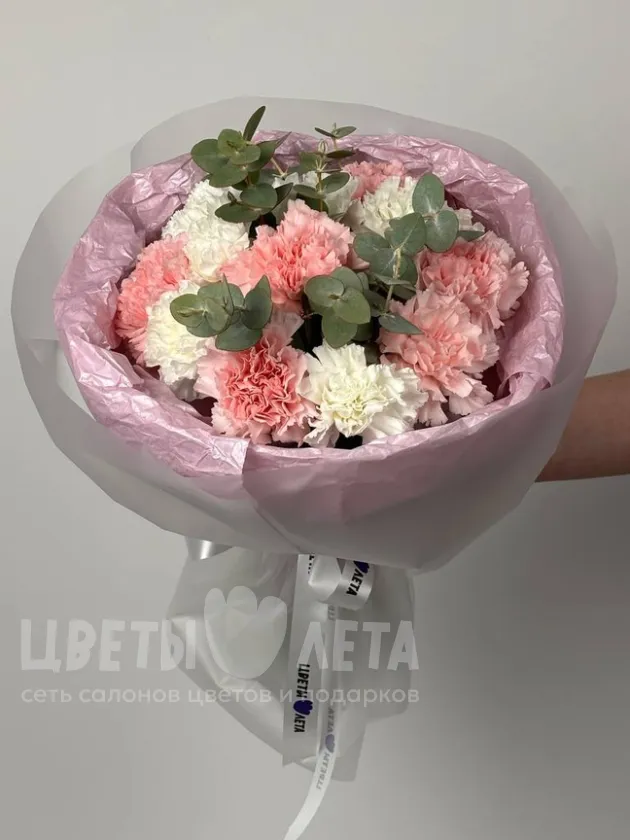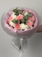 Букет «Ванильный» - это гармоничное сочетание нежно-розовых и кремово-белых гвоздик, создающее ощущение легкости и безмятежности. Словно нежное ванильное мороженое в летний день, этот букет подарит вам радость и хорошее настроение.