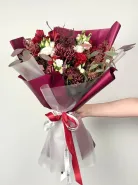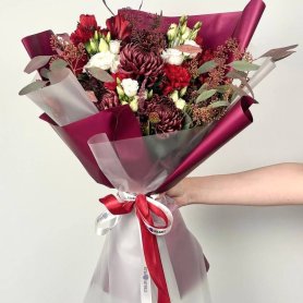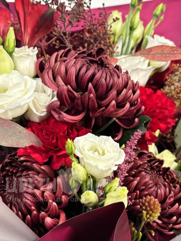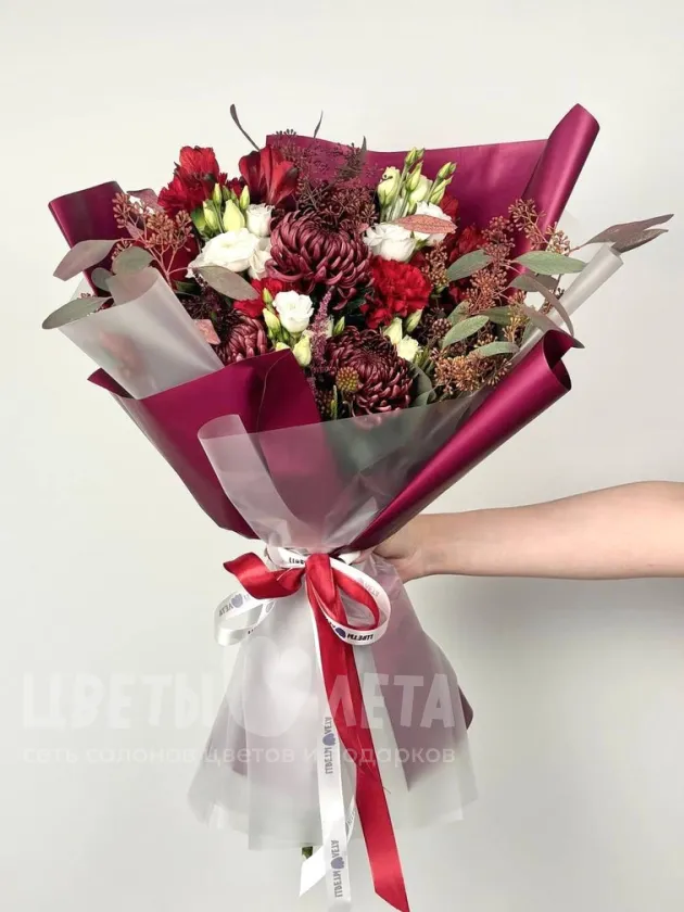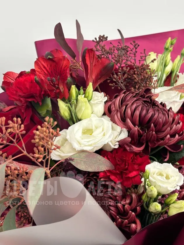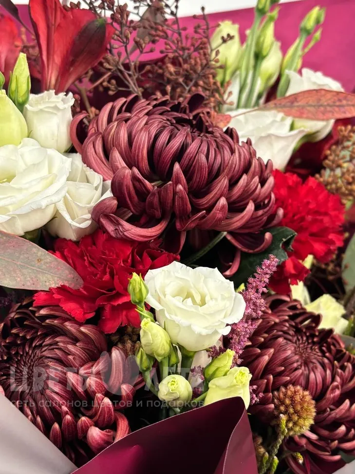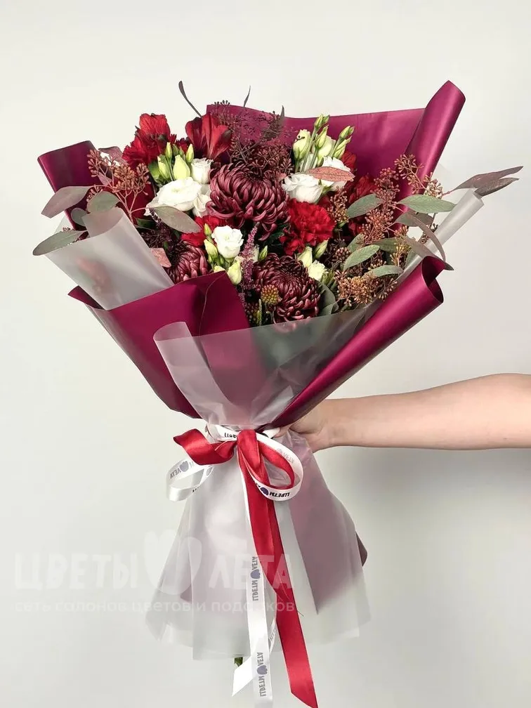 Состав букета может незначительно меняться в зависимости от сезонности и наличия цветов. Пожалуйста, уточняйте состав и наличие у наших менеджеров или в социальных сетях.
