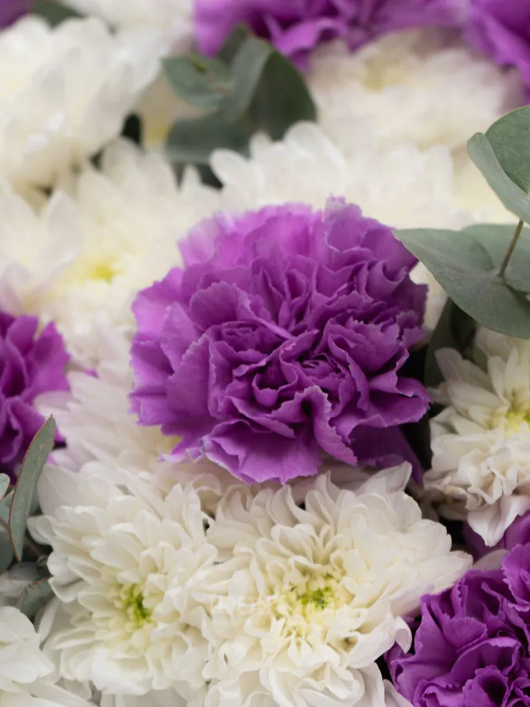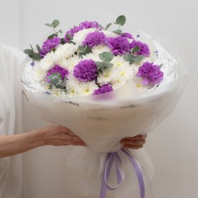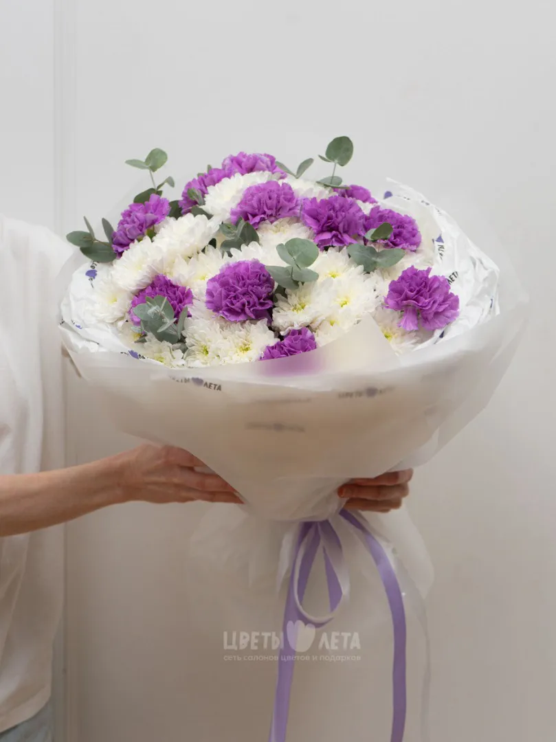 Подарите нежность и интригу с букетом «Тайна Лунной Ночи». Его уникальное сочетание белых хризантем и «лунных» диантусов шепчет о таинственной красоте и глубине чувств, которые невозможно выразить словами.