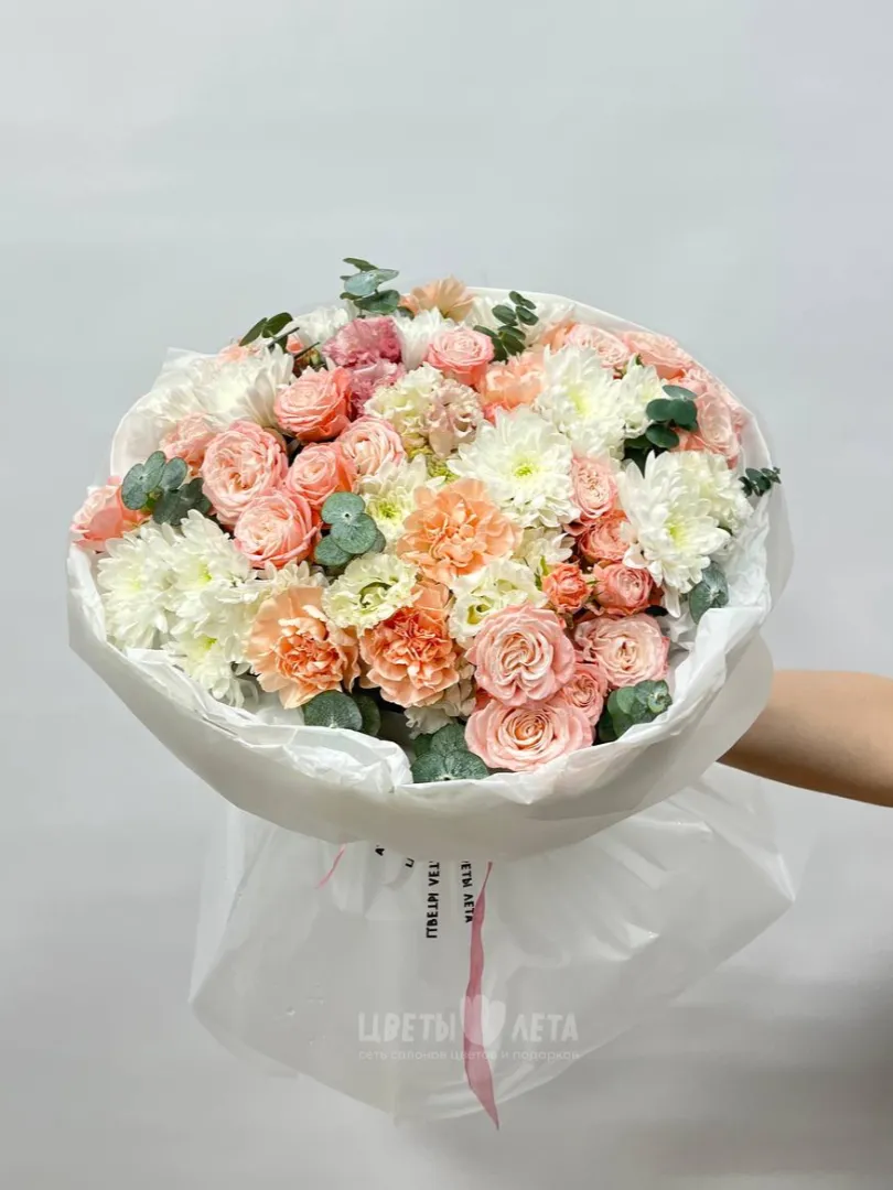 Букет «Ласковое касание» — это воплощение хрупкости и нежности. Словно легкий утренний ветерок или едва уловимое движение руки, он дарит ощущение покоя и искреннего тепла.