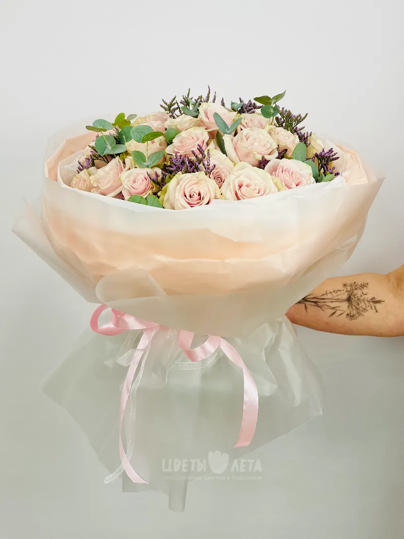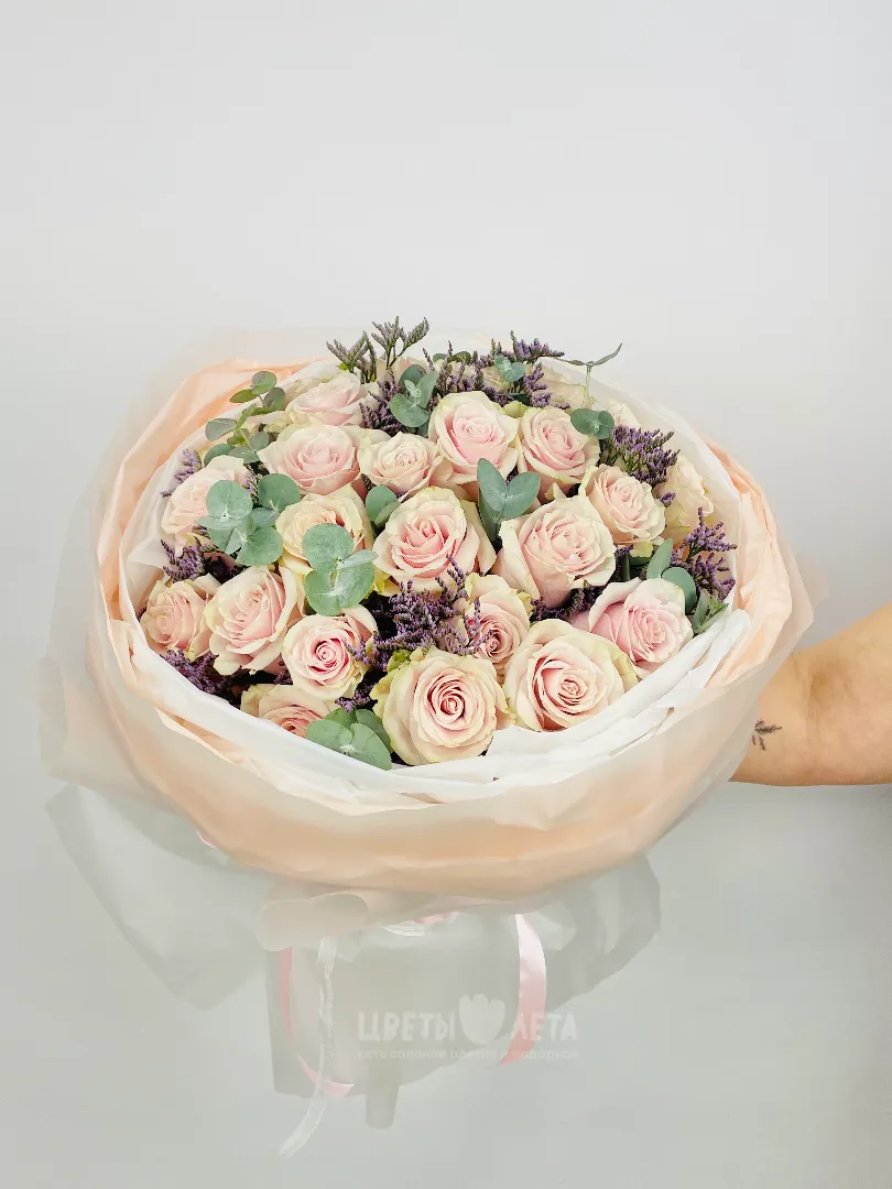 Состав может незначительно меняться, в зависимости от поставок и сезонности цветов, поэтому актуальное наличие уточняйте пожалуйста у менеджеров или в соцсетях.