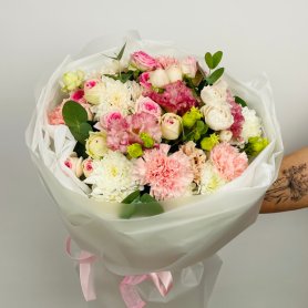 Состав может незначительно меняться, в зависимости от поставок и сезонности цветов, поэтому актуальное наличие уточняйте пожалуйста у менеджеров или в соцсетях.