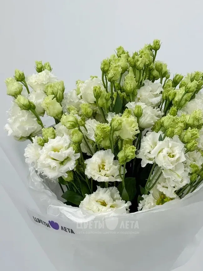 Элегантный букет из белой эустомы – это воплощение изысканного вкуса и безупречного стиля. Нежные, словно шелк, цветы грациозно сочетаются в этой композиции, создавая атмосферу роскоши и утонченности. Прекрасный выбор для особых случаев.