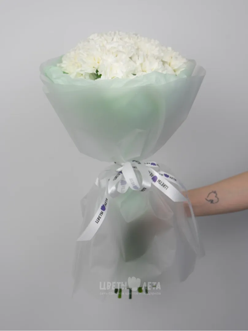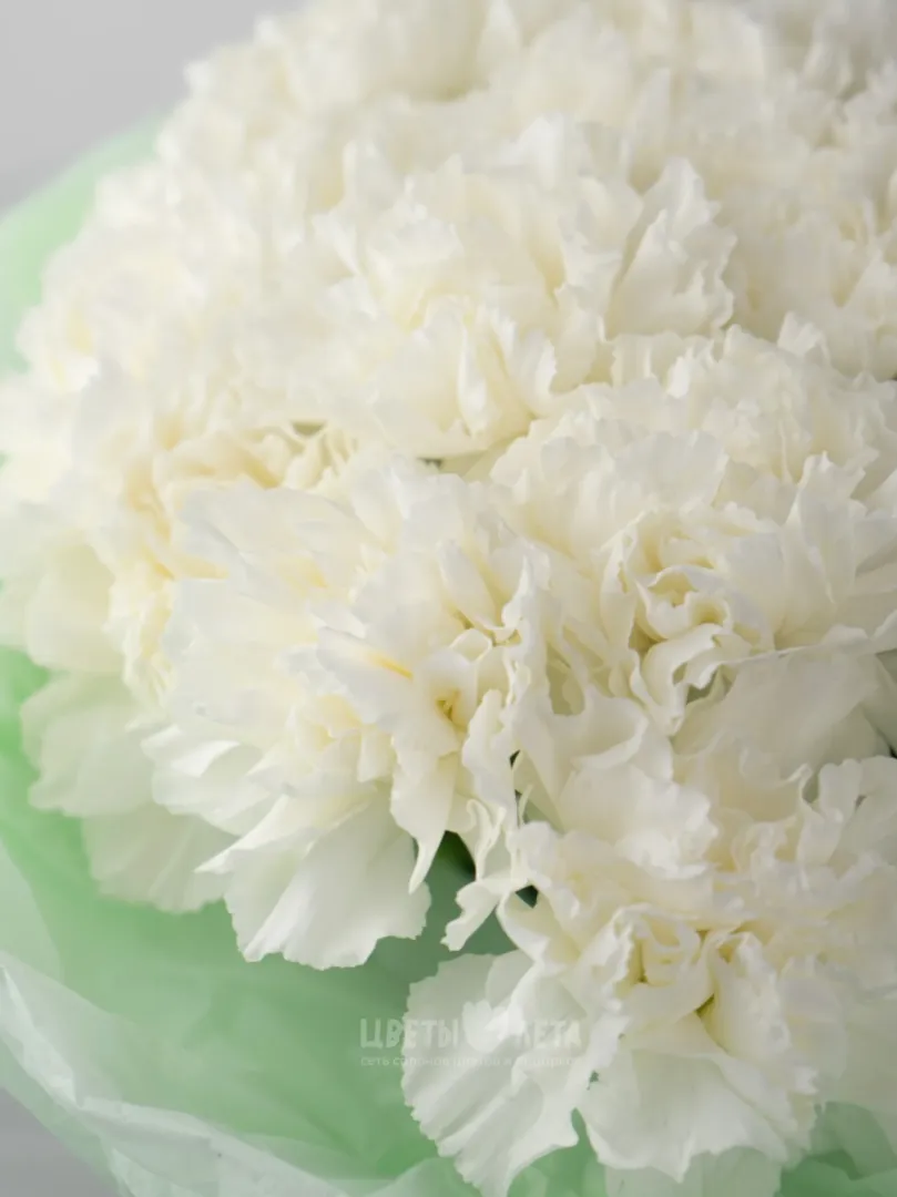 Откройте для себя красоту в простоте с букетом «Белое совершенство»! Белые гвоздики, словно снежинки, завораживают своей чистотой и изяществом. Этот букет – как чистое полотно, на котором можно написать свою историю любви, дружбы или благодарности.