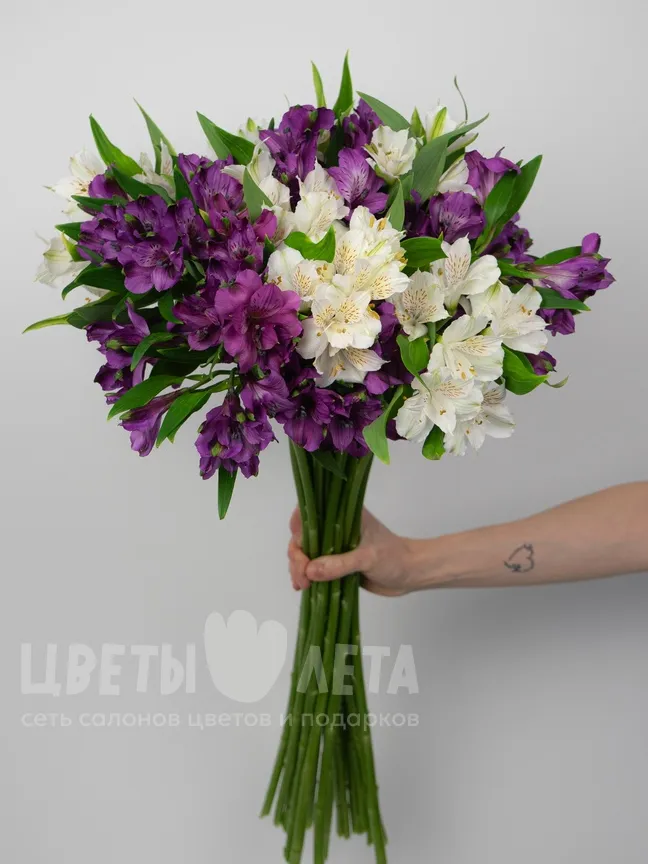 Букет медиум: «Бело-фиолетовый микс альстромерия»