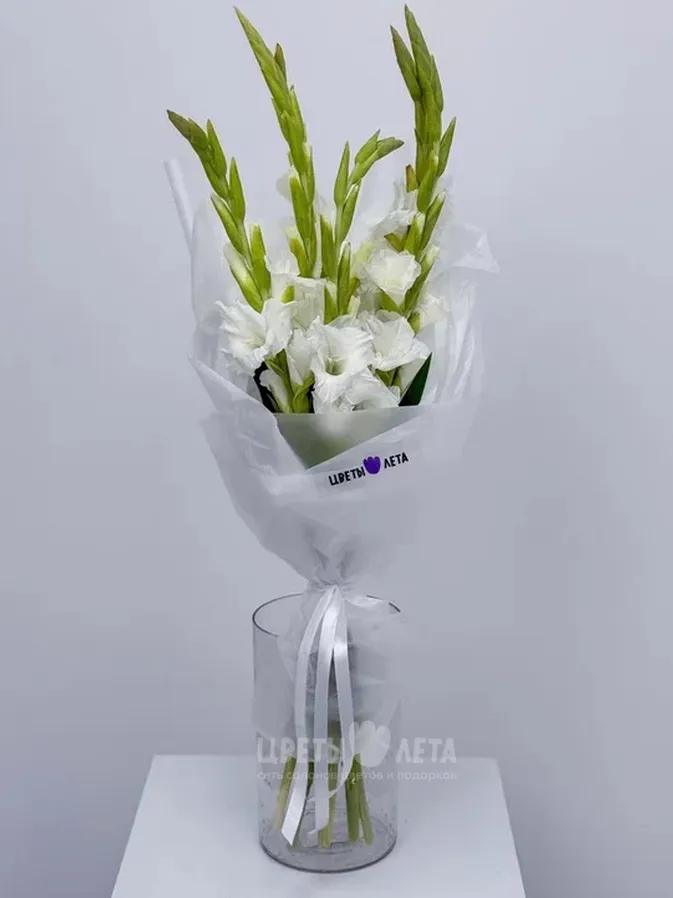 Воплощение чистоты и изысканности - этот букет из белоснежных гладиолусов. Их стройные силуэты и нежные лепестки создают атмосферу торжественности и гармонии. Идеальный выбор для особых случаев, свадеб или просто для того, чтобы подарить немного красоты и света.