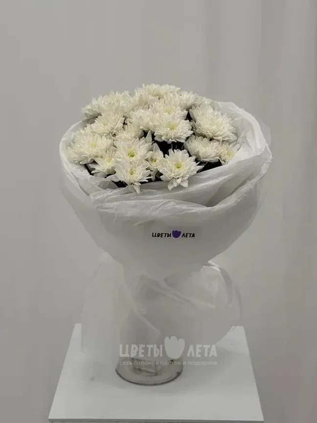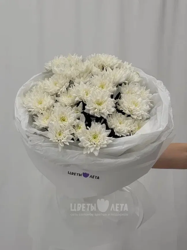 Изысканный букет из белой хризантемы - излучает чистоту и свежесть! Этот элегантный букет станет прекрасным подарком для любого случая, наполняя пространство светом и гармонией!