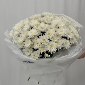 Изысканный букет из белой хризантемы - излучает чистоту и свежесть! Этот элегантный букет станет прекрасным подарком для любого случая, наполняя пространство светом и гармонией!