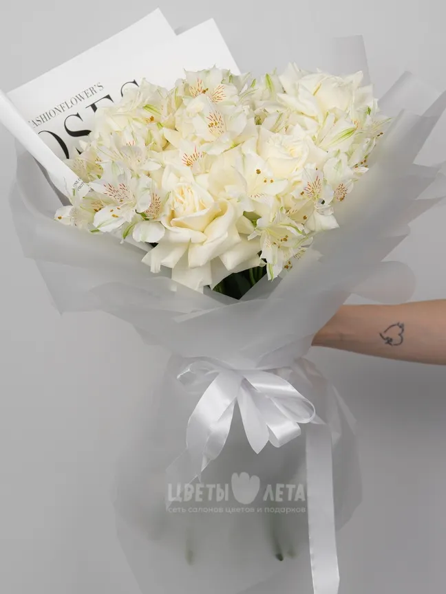 Состав букета может незначительно меняться в зависимости от сезонности и наличия цветов. Пожалуйста, уточняйте состав и наличие у наших менеджеров или в социальных сетях.
