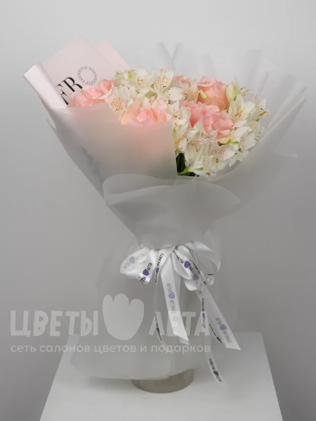 Погрузитесь в мир романтики с букетом «Ажурная пастель»! Этот букет – воплощение нежности, страсти и самых светлых чувств. Ажурная роза, словно королева, окружена вниманием альстромерии, создавая неповторимый и завораживающий образ.
