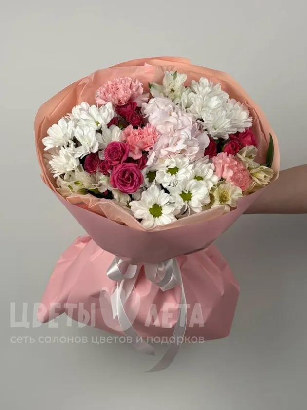 Состав букета может незначительно меняться в зависимости от сезонности и наличия цветов. Пожалуйста, уточняйте состав и наличие у наших менеджеров или в социальных сетях.