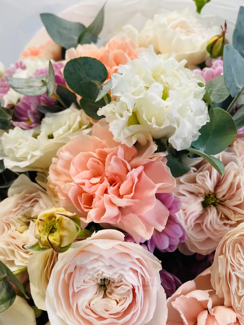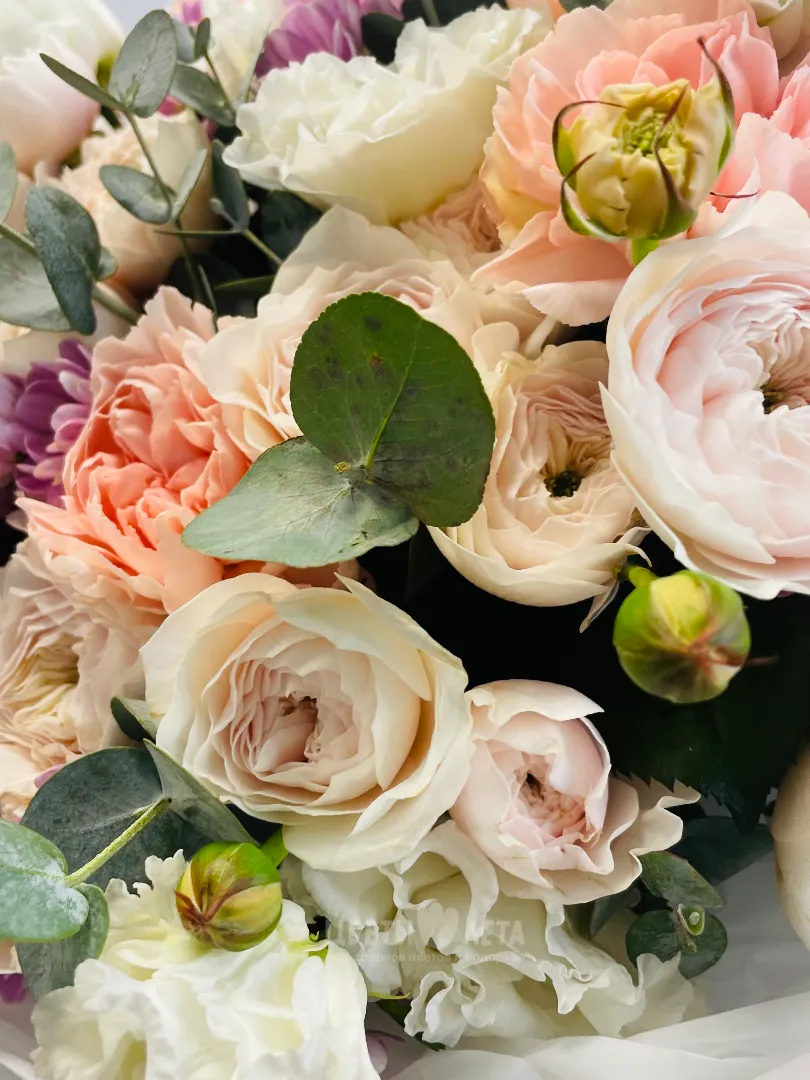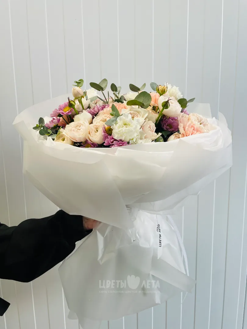 Состав букета может незначительно меняться в зависимости от сезонности и наличия цветов. Пожалуйста, уточняйте состав и наличие у наших менеджеров или в социальных сетях.