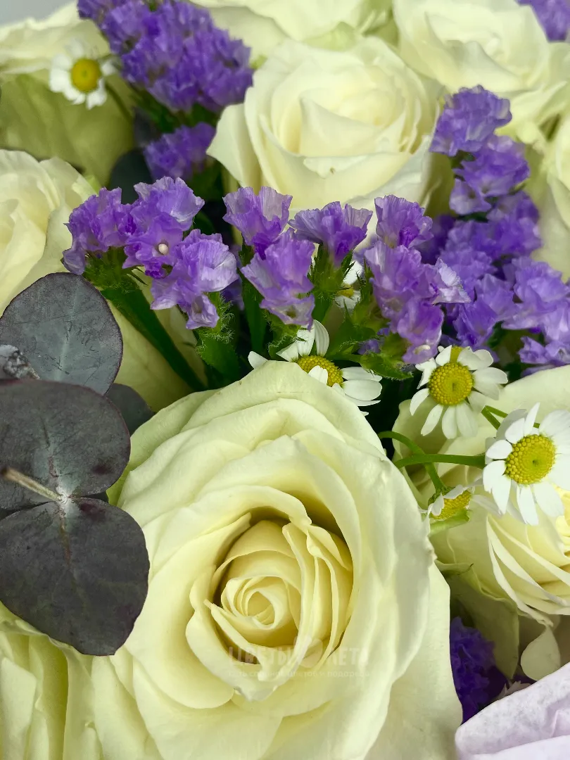 Состав может незначительно меняться, в зависимости от поставок и сезонности цветов, поэтому актуальное наличие уточняйте пожалуйста у менеджеров или в соцсетях.