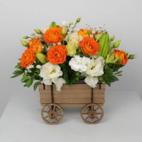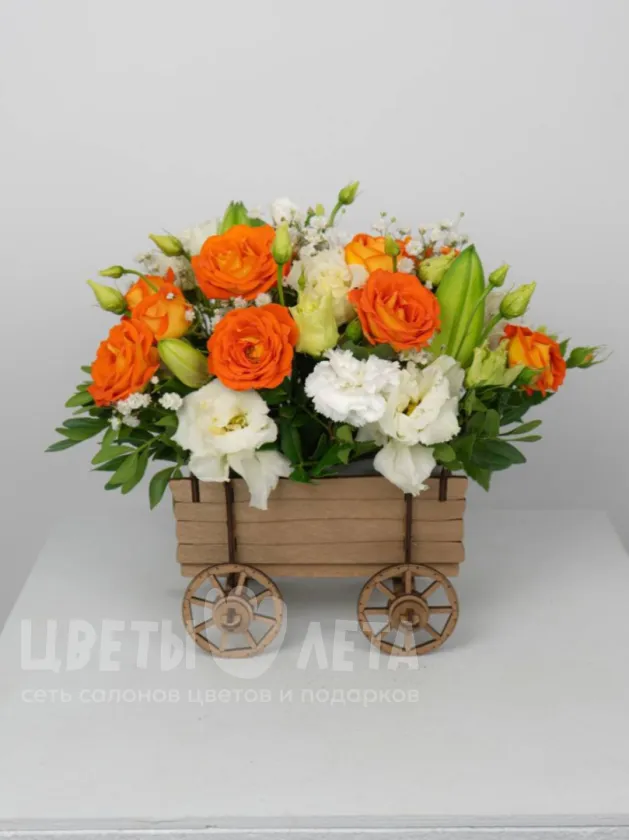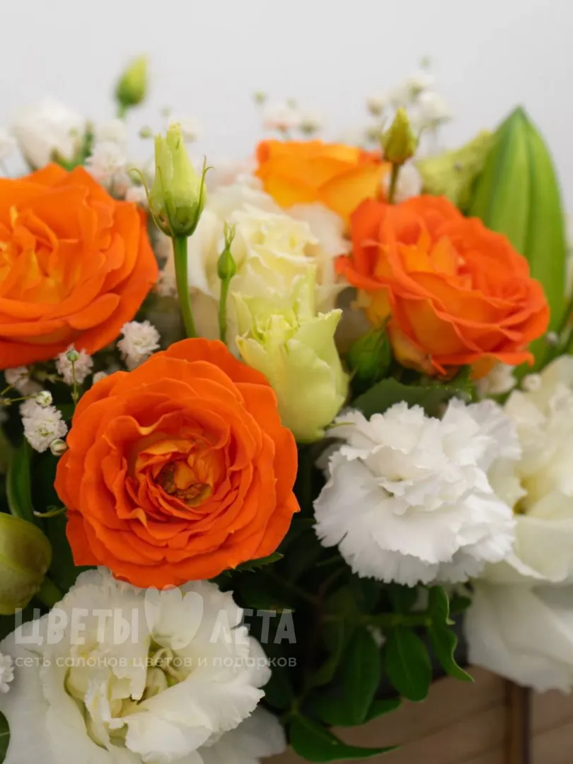 Состав композиции может незначительно меняться в зависимости от сезонности и наличия цветов. Пожалуйста, уточняйте состав и наличие у наших менеджеров или в социальных сетях.
