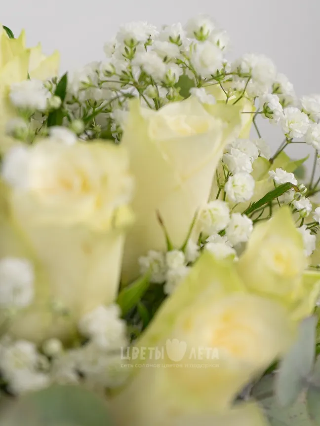 Состав композиции может незначительно меняться в зависимости от сезонности и наличия цветов. Пожалуйста, уточняйте состав и наличие у наших менеджеров или в социальных сетях.
