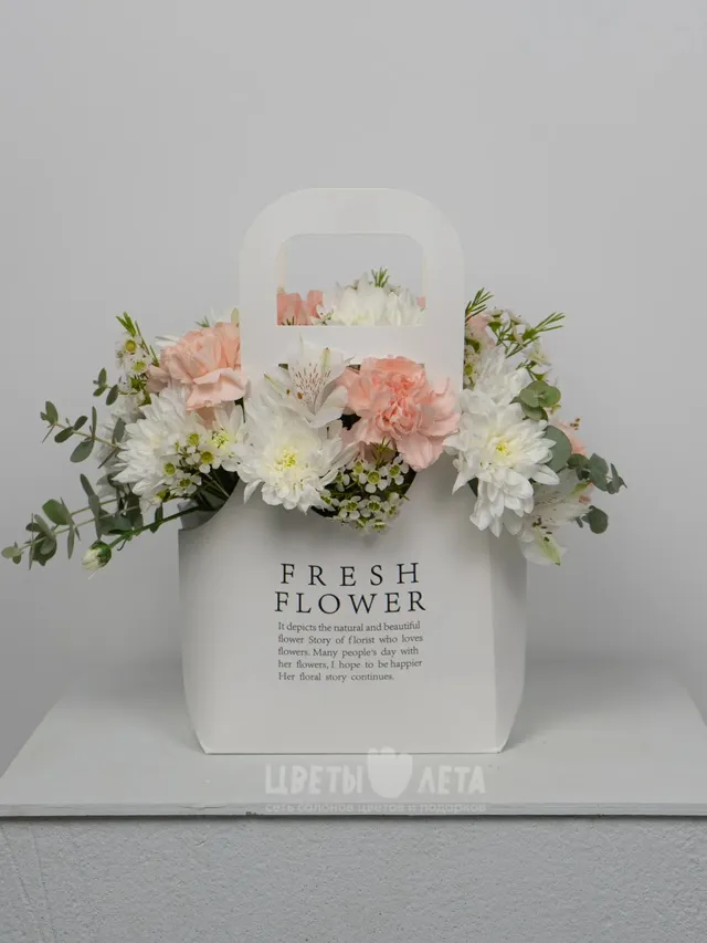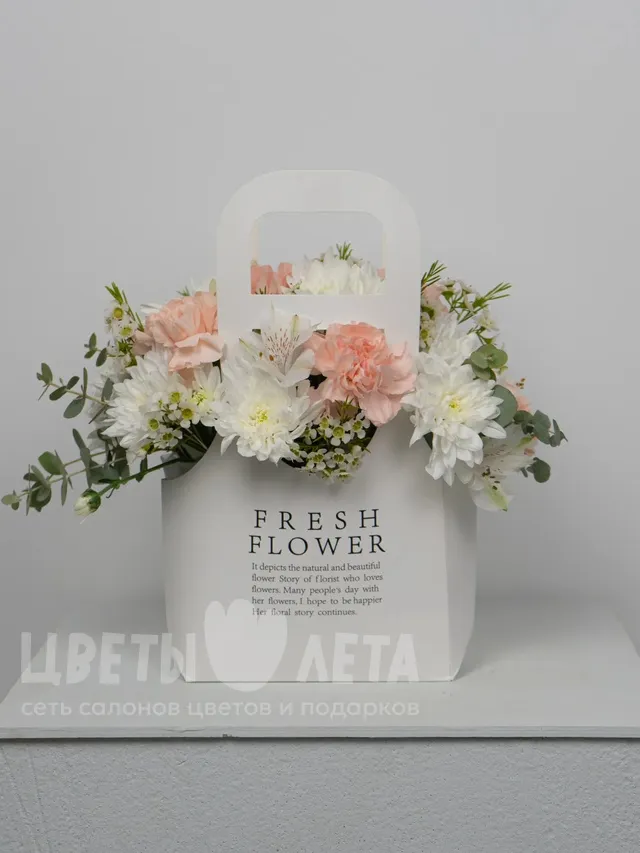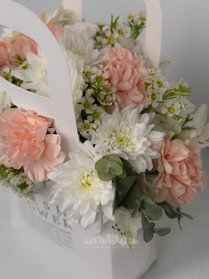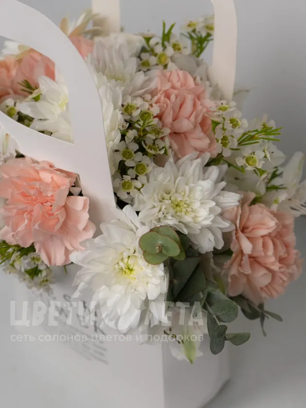 Состав композиции может незначительно меняться в зависимости от сезонности и наличия цветов. Пожалуйста, уточняйте состав и наличие у наших менеджеров или в социальных сетях.