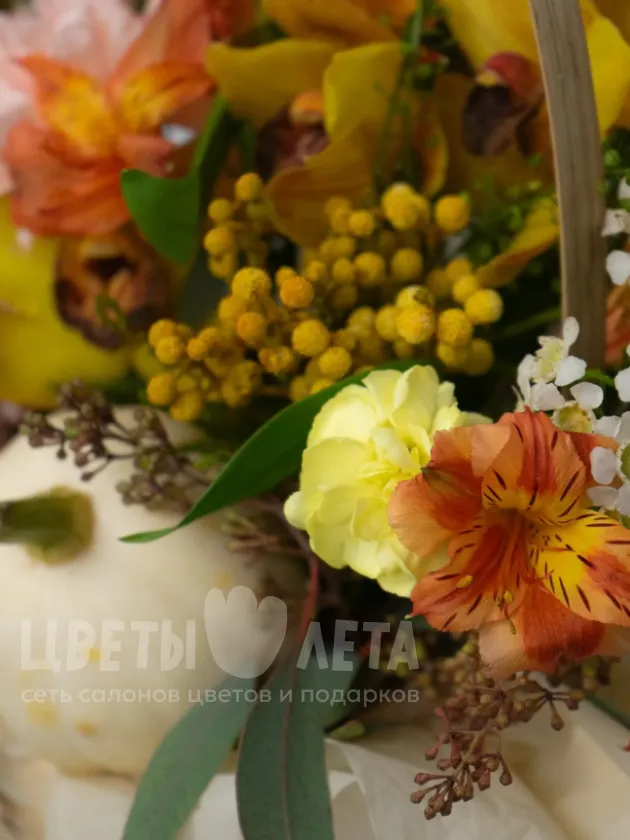 Почувствуйте всю красоту и щедрость осени с композицией «Осеннее изобилие»! Словно собранная из самых лучших даров природы, она наполнена яркими красками, ароматами и теплом. Этот букет станет прекрасным символом процветания и благополучия.