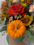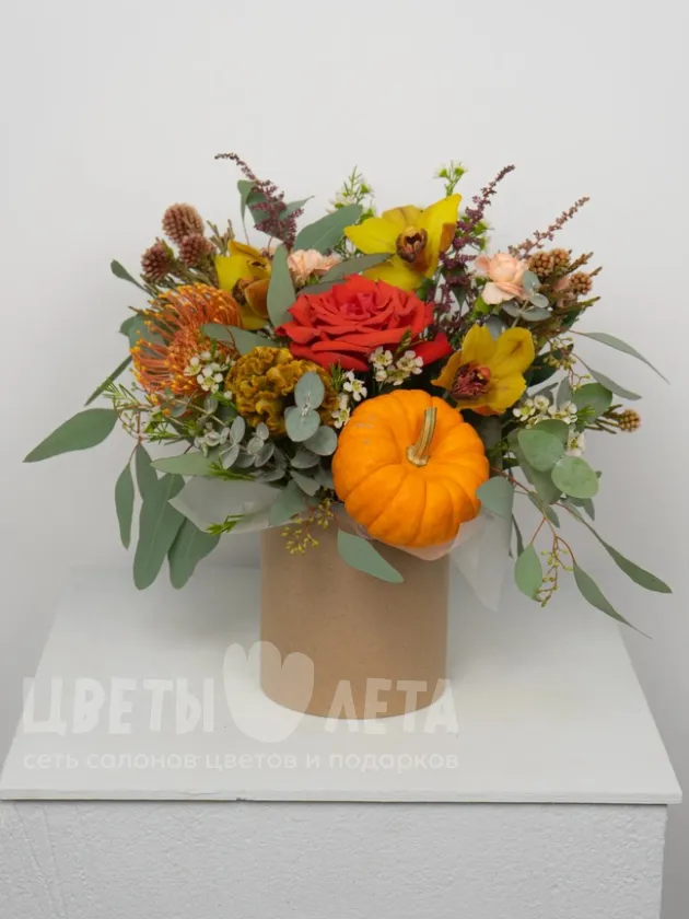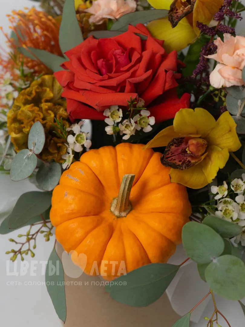Насладитесь всей палитрой осенних красок с этой восхитительной композицией «Палитра осени»! Сочетание теплых оттенков красного, оранжевого, желтого и золотого создает атмосферу уюта, тепла и радости. Этот букет – словно запечатленный осенний пейзаж, он наполнит ваш дом светом и теплом.