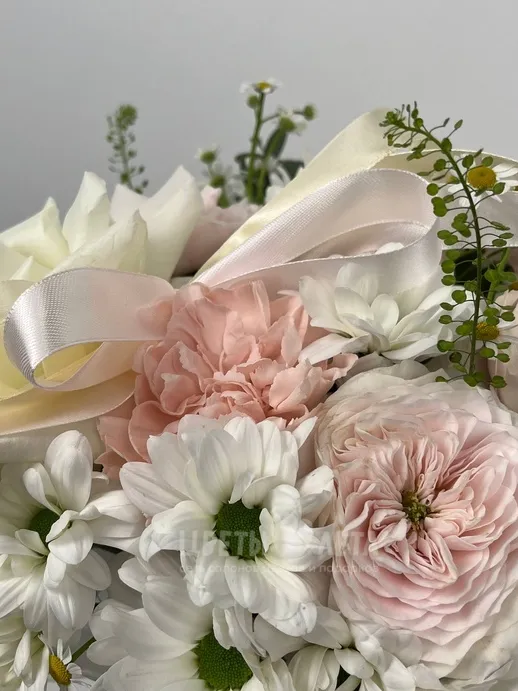 Состав композиции может незначительно меняться в зависимости от сезонности и наличия цветов. Пожалуйста, уточняйте состав и наличие у наших менеджеров или в социальных сетях.