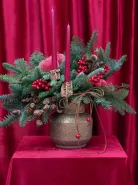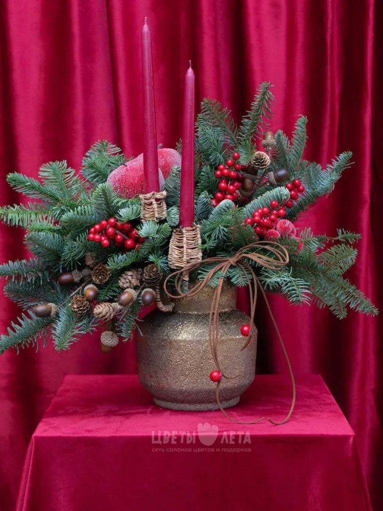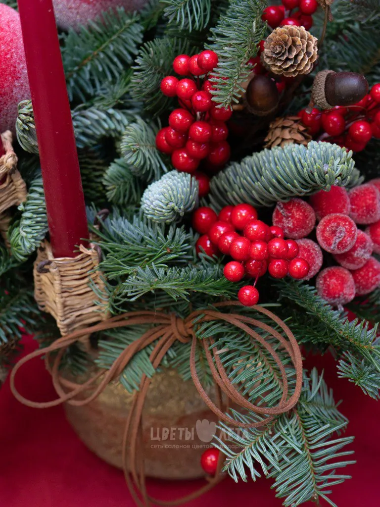 Композиция «Новогоднее Чудо»: кусочек зимней сказки, собранный из ароматной хвои, шишек и мерцающих новогодних украшений. Идеальный подарок и украшение для праздничного настроения!