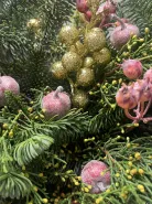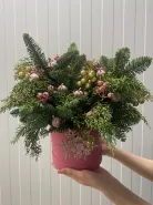 Создайте волшебную атмосферу праздника с нашими уникальными новогодними композициями. Каждая из них – это произведение искусства, сочетающее свежесть еловых веток и сияние новогодних игрушек.