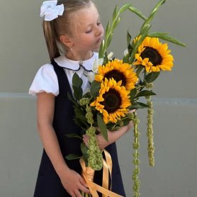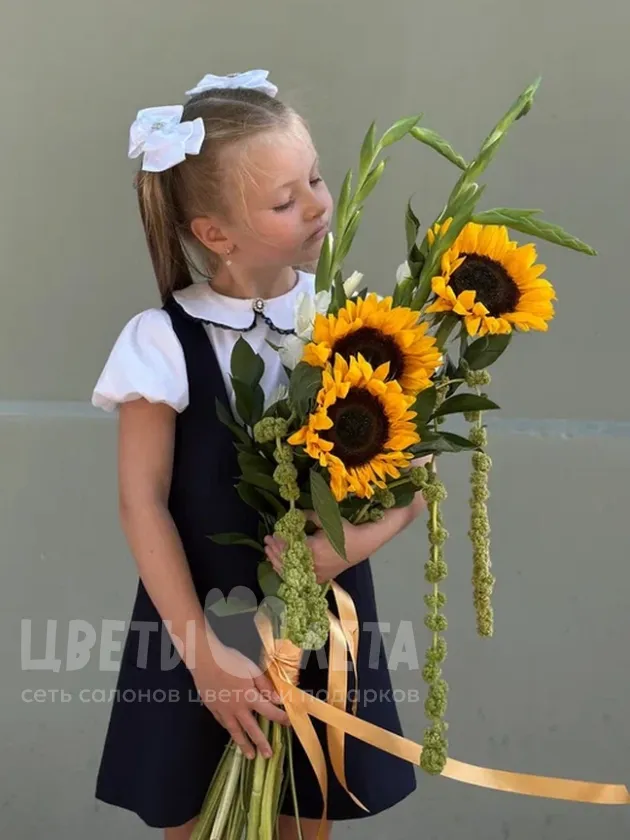 Яркий и солнечный букет подсолнухов - отличный способ поздравить с Днем Знаний!
