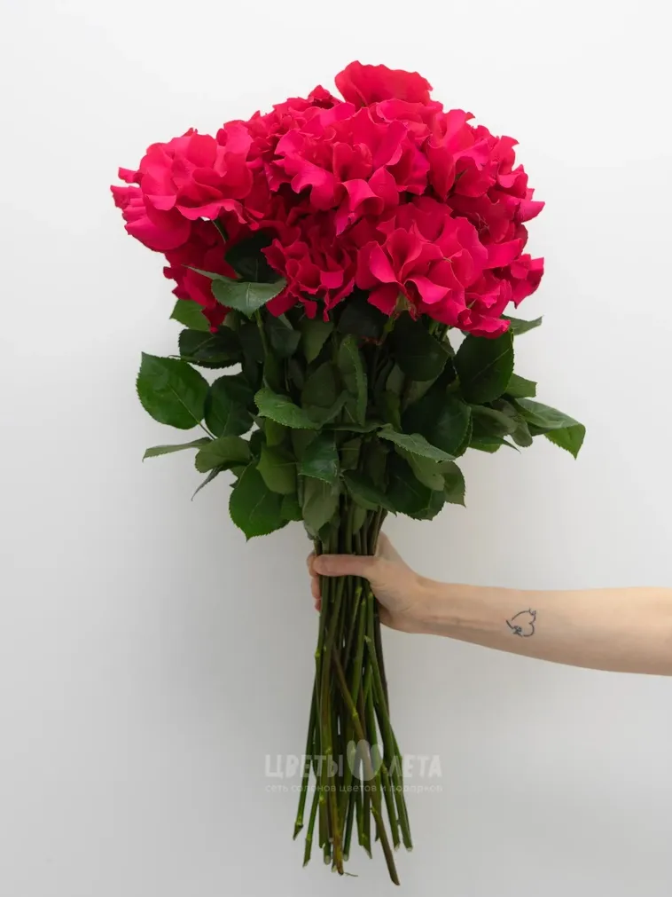 Букет «Малиновый поцелуй»: яркий, страстный и незабываемый, как первый поцелуй!" Состав букета может незначительно меняться в зависимости от сезонности и наличия цветов. Пожалуйста, уточняйте состав и наличие у наших менеджеров или в социальных сетях.